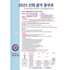 선화예술중학교 총동문회에서 주최, 주관하고 선화예술중학교에서 후원하는 2025년 선화 음악 콩쿠르가 개최된다. 예선 9월 6일(토), 본선 9월 13일(토) 예,본선으로 경연이 치뤄진다. 접수기간은 8월 25일(월)에서 9월 1일(월) 18…