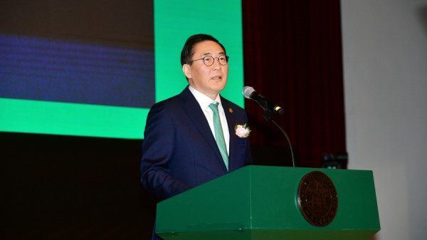 원종필 총장 “글로벌 리더십 실현해 세계 100대 대학 도전할 것” 박상희 총동문회장 “동문들의 지혜와 역량 모아 건국대 비상 돕겠다”