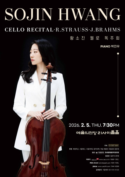 첼리스트 황소진이 오는 2월 5일 오후 7시 30분, 서울 리사이틀홀에서 독주회를 연다. 피아니스트 박진우가 함께 무대에 오른다.이번 독주회는 황소진이 독일 베를린 국립음대에서의 수학과 유럽 무대 경험을 바탕으로 구축해 온 음악 세계를 국내 관객에게 선보이는 자리다. …