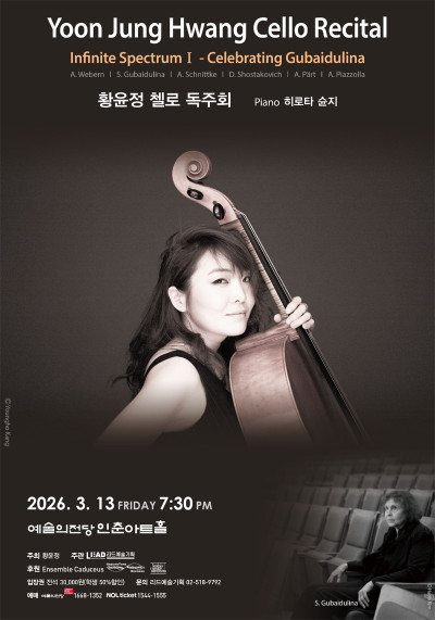 첼리스트 황윤정, ‘Infinite Spectrum I – Celebrating Gubaidulina’ 독주회 개최첼리스트 황윤정이 현대음악의 다양한 스펙트럼을 조명하는 프로젝트 독주회 ‘Infinite Spectrum I – Celebrating Gubaidulina…