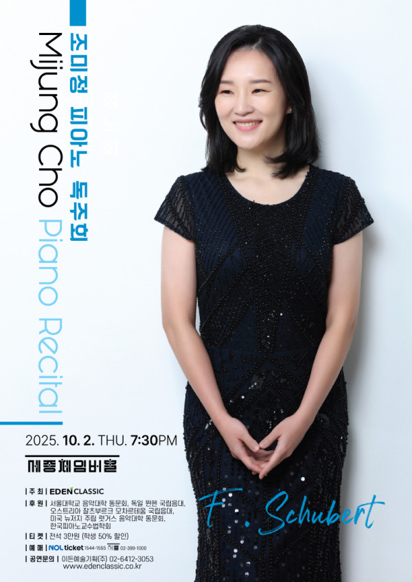 피아니스트 조미정은 다음달 10월 2일 세종문화회관 체임버홀에서 피아노 독주회를 연다. 서울대학교 음악대학 동문회, 독일 뮌헨 국립음대, 오스트리아 잘츠부르크 모차르테움 국립음대, 미국 뉴저지 주립 럿거스 음악대학 동문회, 한국…