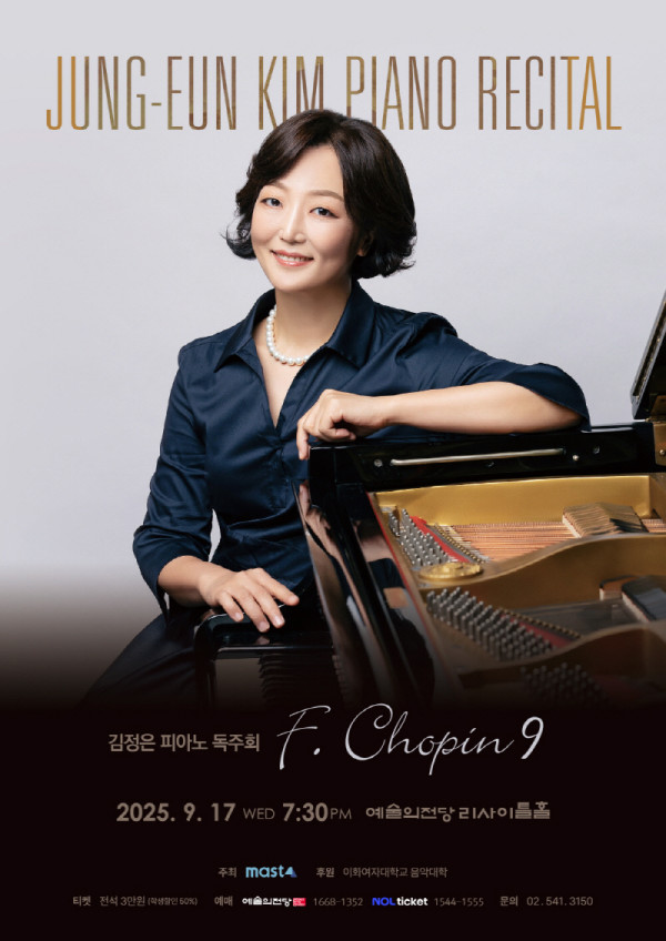 김정은 피아노 독주회가 예술의전당 리사이틀홀에서 9월 17일 열린다.