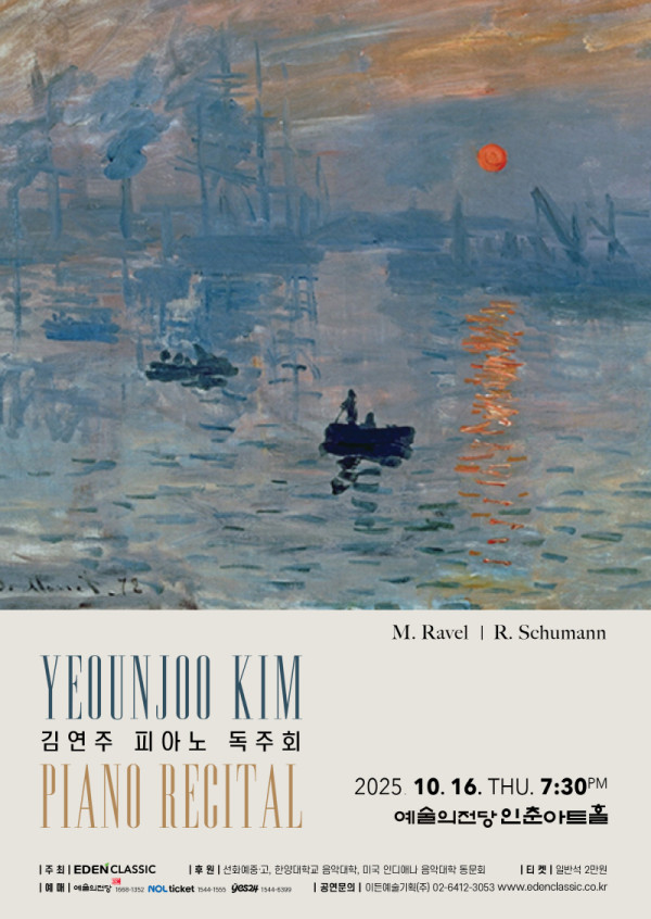 김연주 피아노 독주회가 예술의전당 인춘아트홀에서 10윌 16일 열린다.