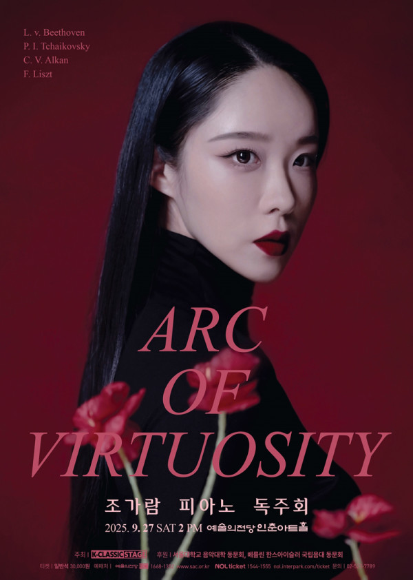 조가람 피아노 독주회가 예술의전당 인춘아트홀에서 열린다.