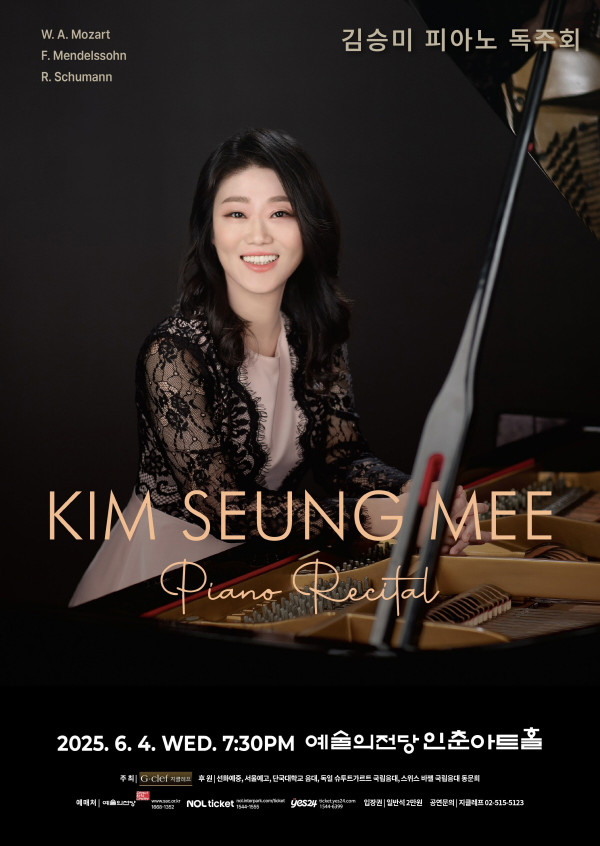 2025월 6월 4일 예술의전당 인춘아트홀에서 세련된 무대와 따뜻한 음색을 지닌 파아니스트 김승미가 독주회를 연다.