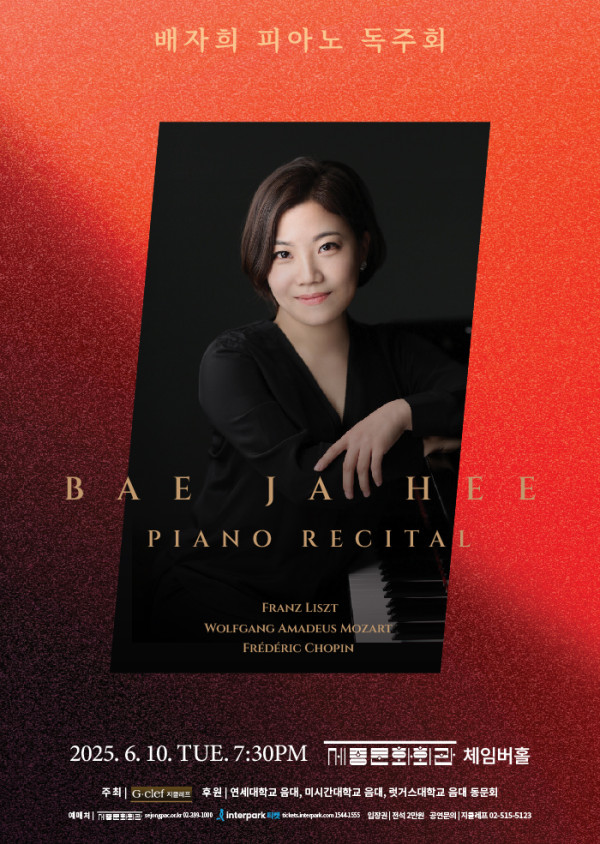 2025년 6월 10일(화) PM 7시 30분에 배자희 피아노 리사이틀이 공연된다.