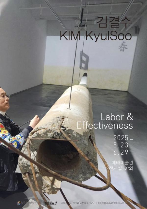 (재)칠곡문화관광재단(이사장 김재욱)은 오는 5월 23일부터 6월 29일까지 예태미술관에서 현대미술 작가 김결수의 개인전〈Labor & Effectiveness :노동과 효과성〉을 개최한다. 이번 전시는 재단의 2025년 첫 기획전으로, 버려진 사물에…