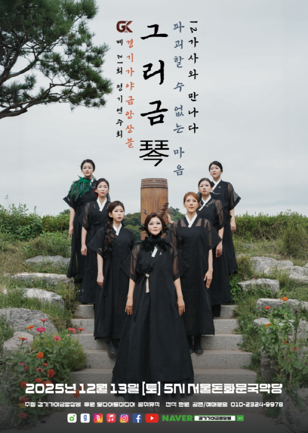 경기가야금앙상블이 오는 12월 13일 오후 5시, 서울돈화문국악당에서 제21회 정기연주회를 개최한다. 올해 무대는 ‘12가사 프로젝트 – 파괴할 수 없는 마음’을 주제로, 전통 가사의 구조를 현대적 감성으로 재해석한 다섯 편의 신작을 전곡 세계초연으로 선보인다.이번 공…